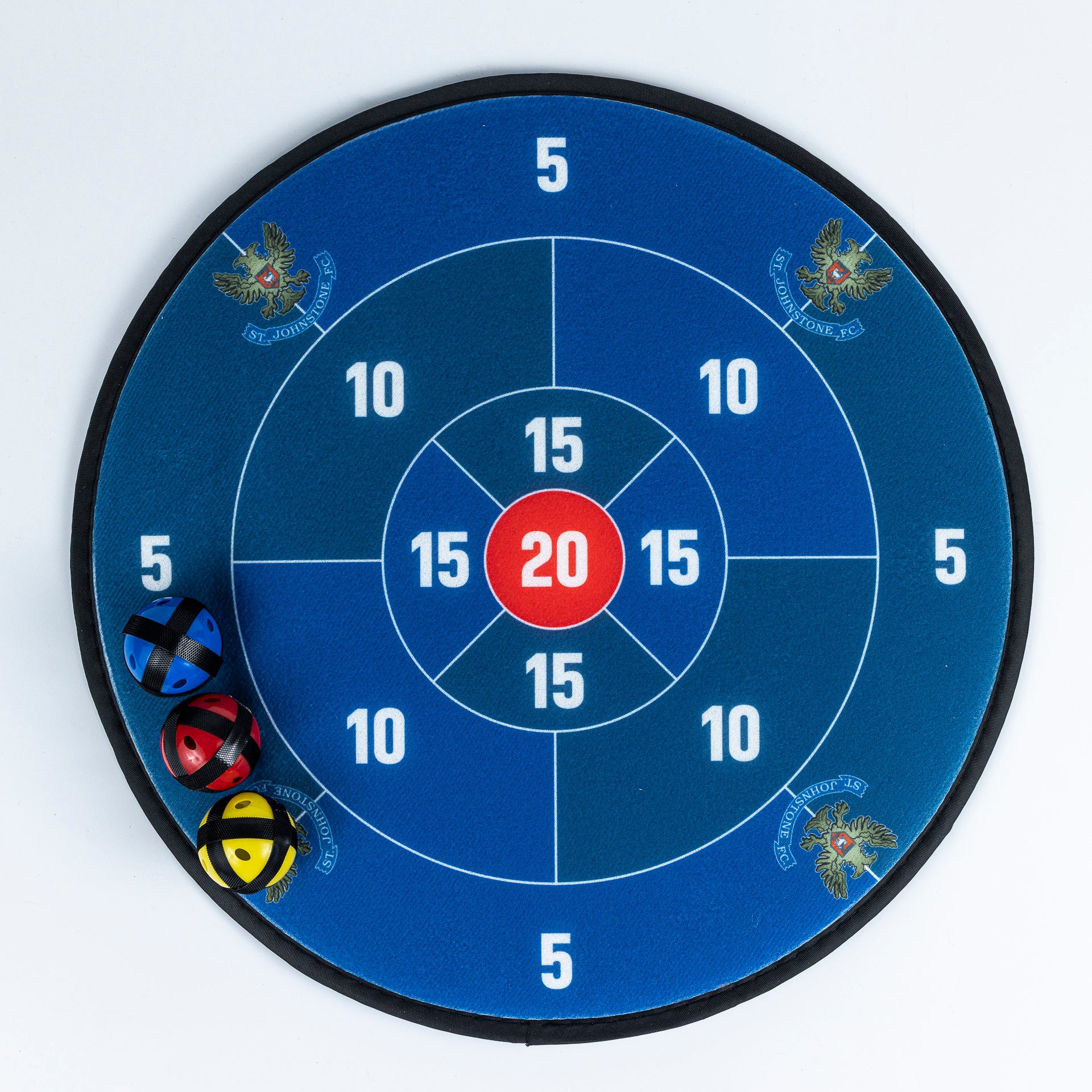 The SJFC Fabric Dartboard offers a safe and lightweight alternative to a traditional dartboard. Made from soft fabric with a Velcro-style surface, it allows the included ball darts to stick easily, making it suitable for all ages. Designed in club colours with St Johnstone FC detailing, it’s a fun indoor activity for young supporters and families while showing Saints pride.