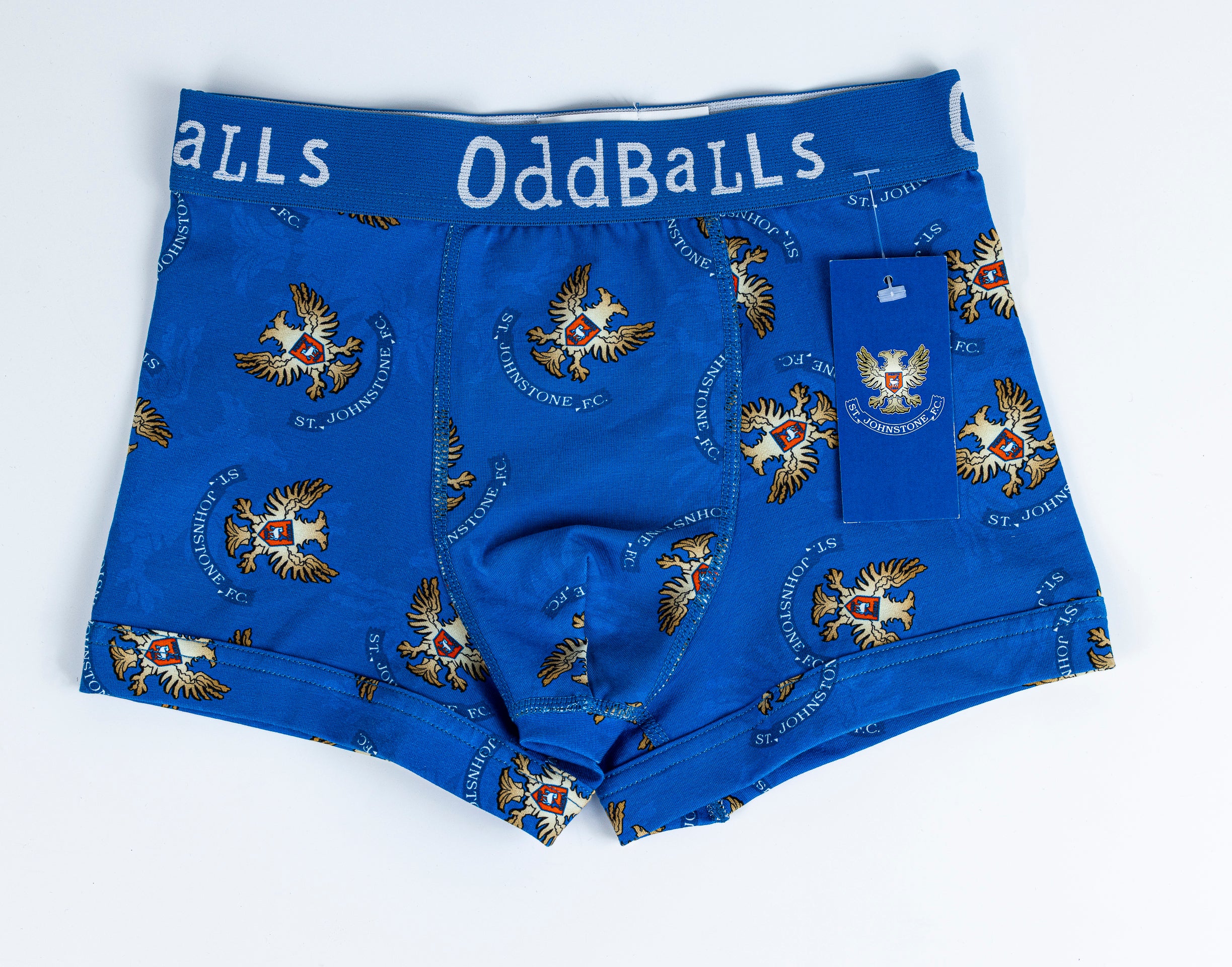 The SJFC OddBalls Boxers feature an all-over St Johnstone FC crest design in the club’s bold blue colours. Made from a soft, stretchy fabric, they offer a comfortable fit with the signature OddBalls branded waistband. Designed for everyday wear, these boxers provide a lightweight feel and a standout Saints look.