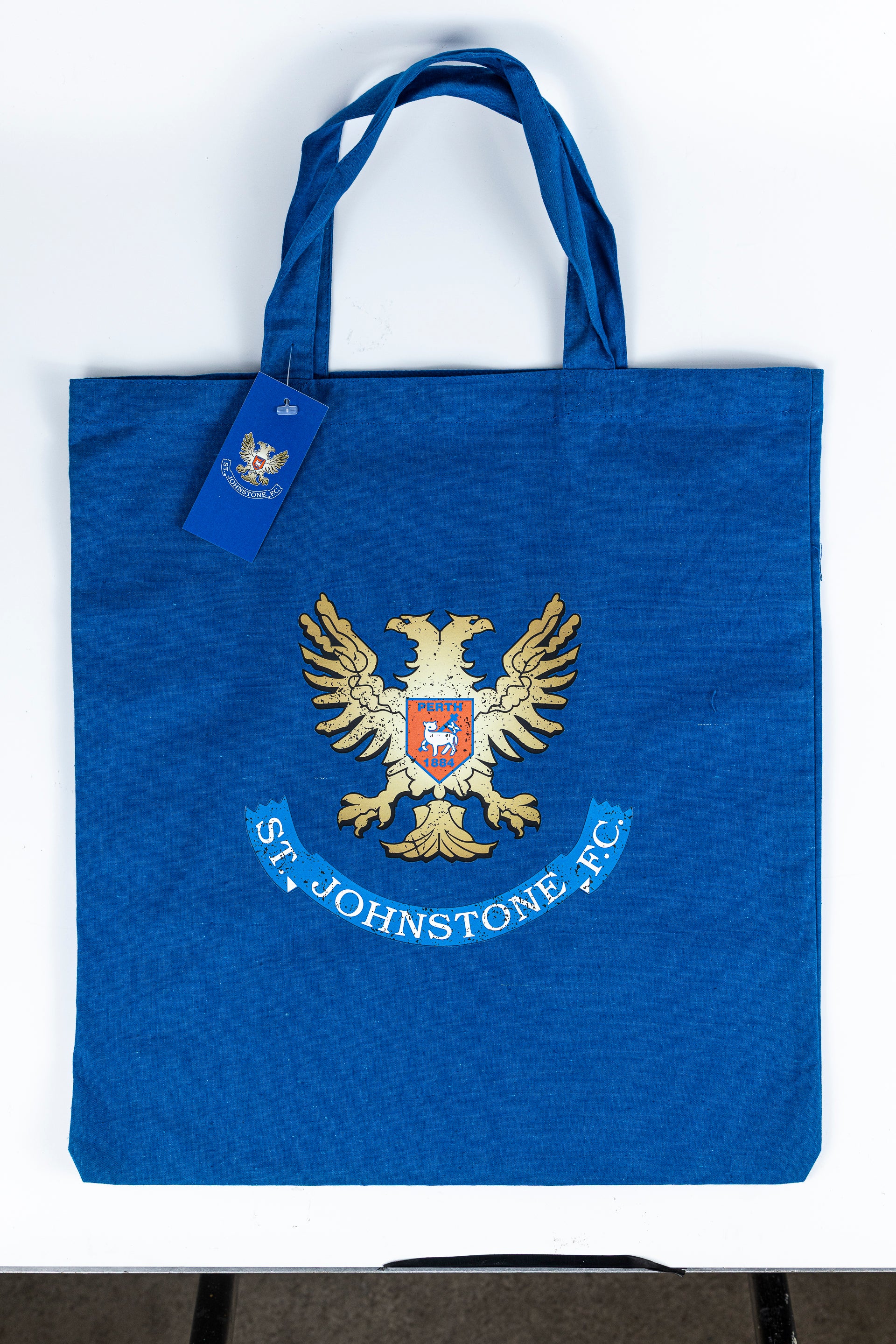 The SJFC Shopper Tote Bag in blue offers a practical and lightweight option for everyday use. Made from durable fabric, it features comfortable shoulder straps and a bold St Johnstone FC crest on the front. Ideal for shopping, matchdays, or carrying essentials, it’s a simple and reusable way for supporters to show their club pride.