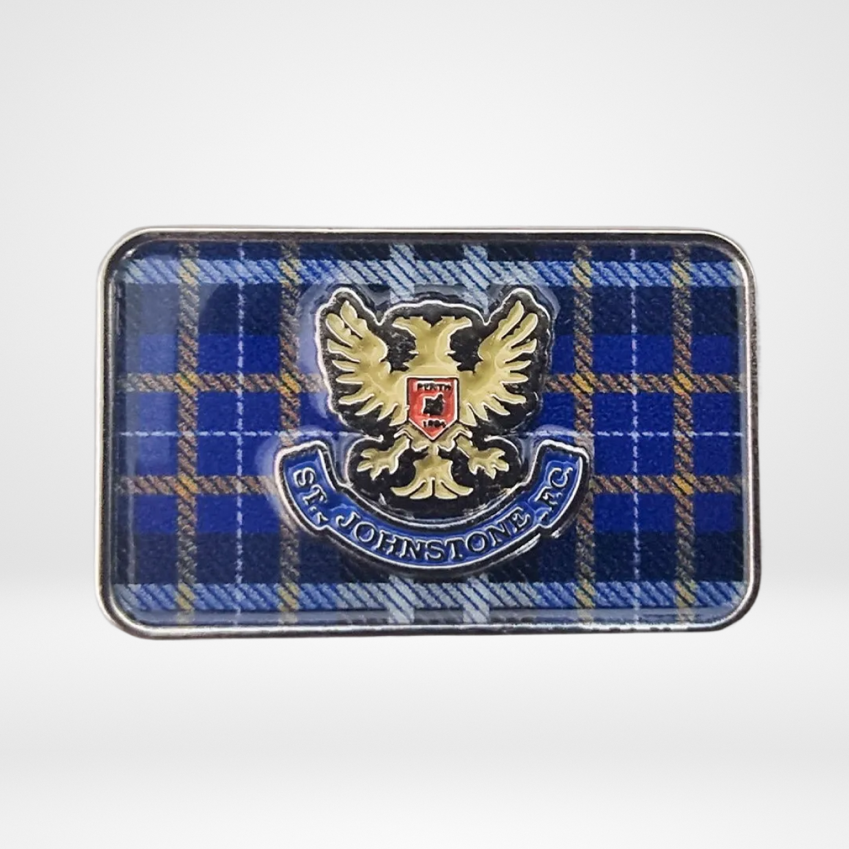 The SJFC Tartan Pin Badge features the club’s crest set against a bold blue tartan background. Made from durable metal with a glossy finish, it includes a secure fastening on the back for easy attachment to jackets, bags, hats, or display boards. Compact and eye-catching, this badge offers a distinctive way for supporters to show their Saints pride with a Scottish twist.