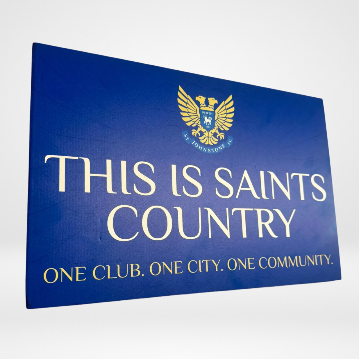 The “This Is Saints Country” Garden Sign is a bold, weather-resistant display piece designed to show your support for St Johnstone at home or outdoors. Measuring 460mm x 300mm, it features a clear club-themed design on a durable panel suitable for fences, sheds, walls, or garden spaces. A simple and effective way for supporters to add a Saints touch to their surroundings.